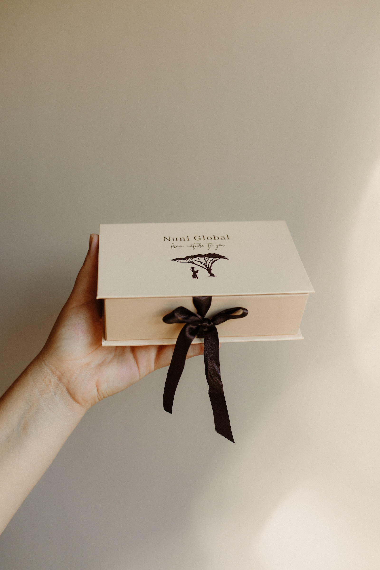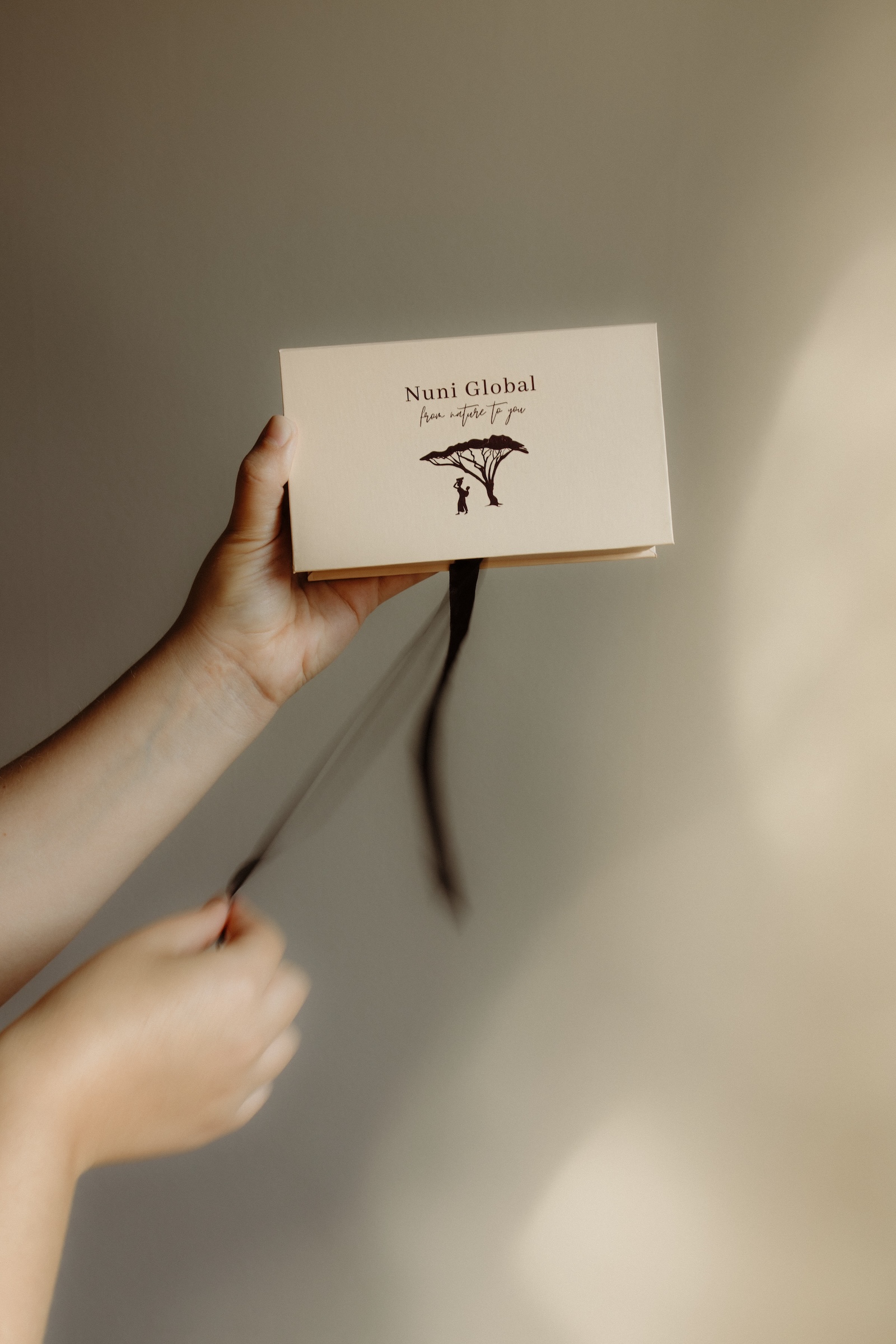 Det finns arganolja och så finns det Nuni Globals arganolja – nu förpackad i en elegant, varm, vacker presentförpackning. Den 100% naturliga, silkeslätta oljan mjukgör, återfuktar och ger naturlig lyster till både hud, hår och naglar – nu inslagen i en exklusiv box med sidenband som gör den perfekt som gåva till dig själv eller någon du vill visa extra omtanke för.