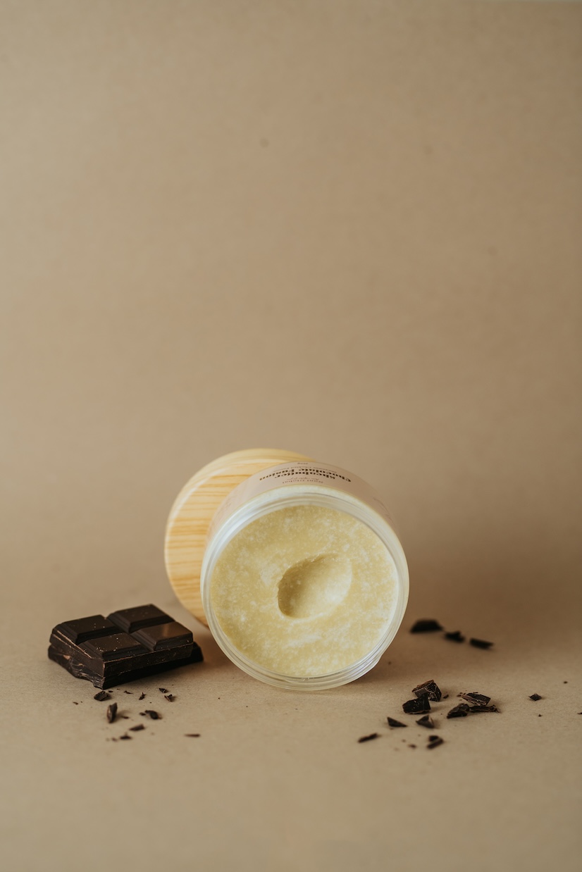 Butyrospermum Parkii Butter (Unrefined), Olea Europaea Fruit Oil, Theobroma Cacao Seed Butter, Parfum* (eterisk olja).