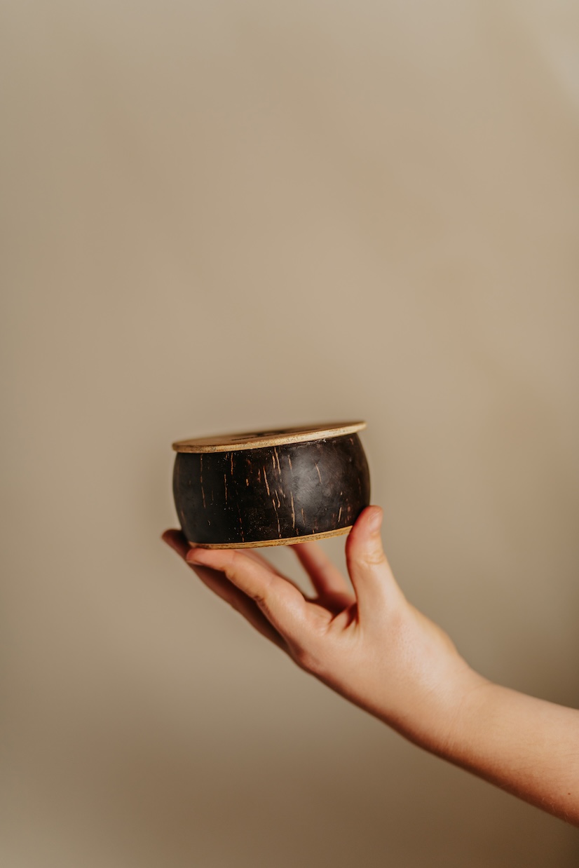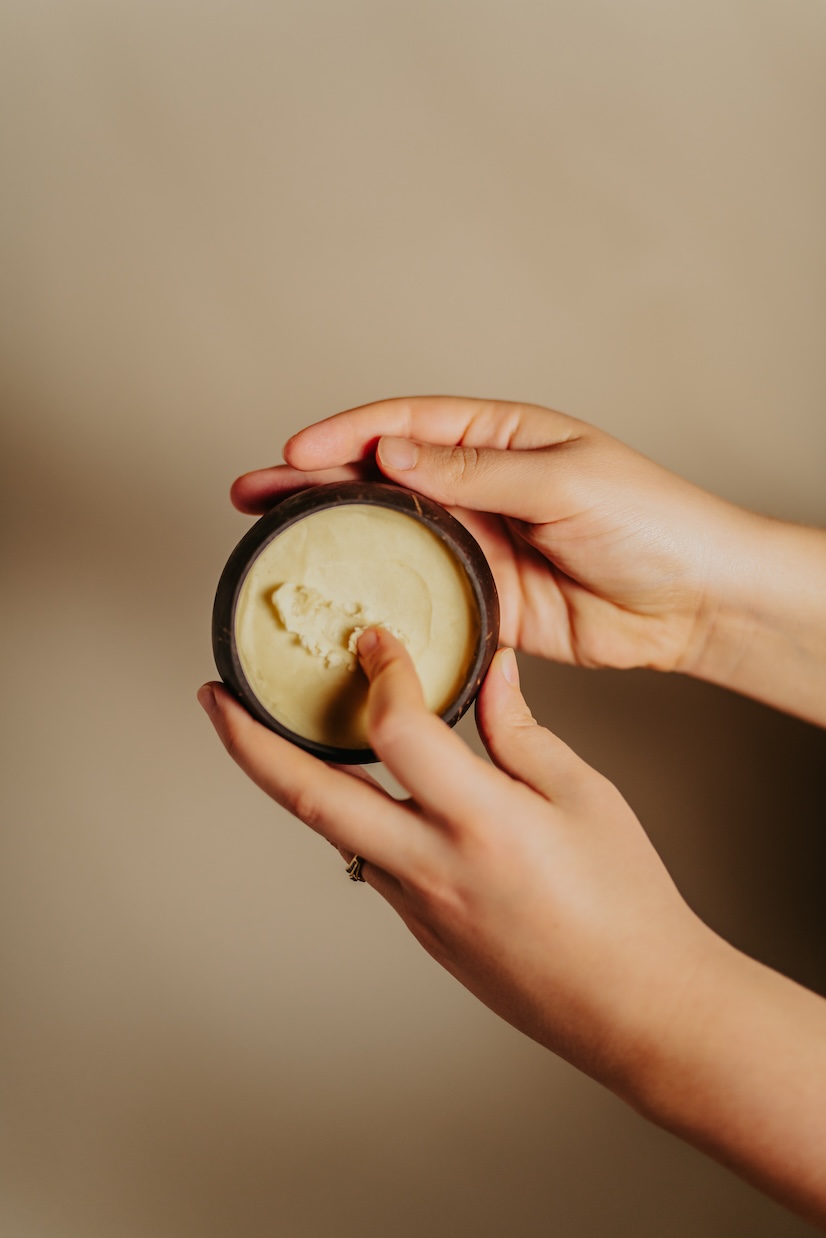 Möt det oraffinerade, handgjorda, magiska sheasmöret, förpackat i naturligt, handgjort kokosnötsskal.